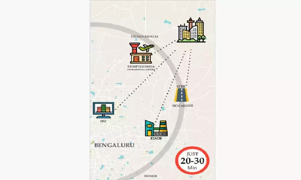 Strategically located near key areas like Whitefield and Kempegowda International Airport, Silver Kites Elite Bangalore is ideal for those seeking a peaceful residential setup with easy access to Bangalore's tech hubs. The development is near upcoming projects like an international yoga retreat, and more which further adds to the appeal of the property. Strategically located on SH-35, the complex is just 20 minutes from the New Bangalore International Airport. It is 10 kms from Devanahalli Jain Temple. The property enjoys easy access to the BMRDA Nandagudi Township and the SEZ. The locality is 20 minutes from Hoskote Industrial Area. It is 20 minutes from the ITIR-Information Technology Investment Region. The strategic locality as well as the amenities available make it a great investment option in Bangalore.